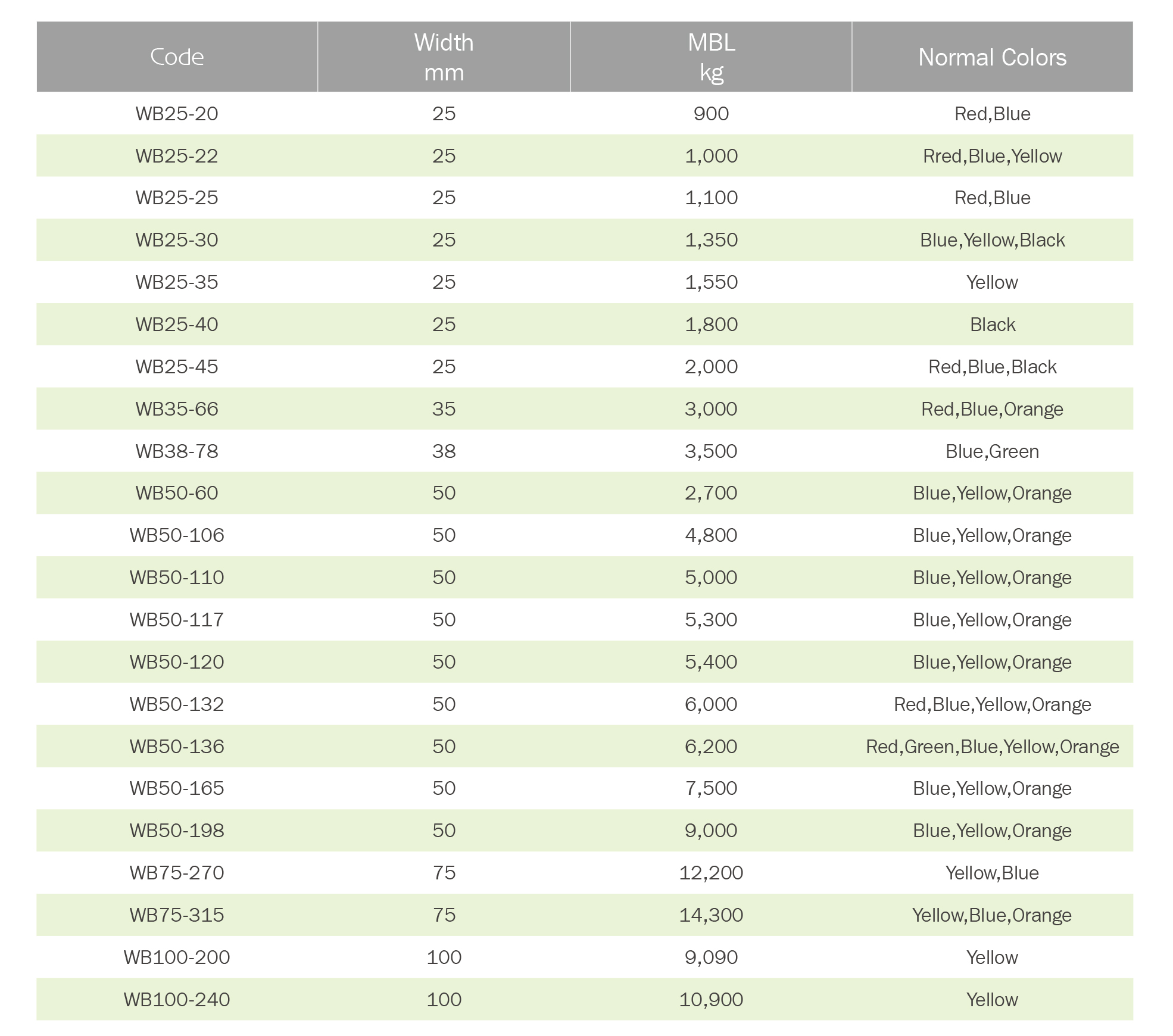 BENKEV produces webbing in 25mm,35mm,38mm,50mm,75mm right through to 100mm and we can be cutomized suit your requirements.